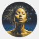 Spirituelle Frau im Wasser unter den Sternen Runder Aufkleber