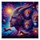 Die spirituelle Kunst Das Kunstwerk stellt eine mächtige und mystische Szene dar, die Elemente der Spiritualität, Mythologie und Natur miteinander verbindet. Die zentrale Figur strahlt ein Gefühl der Gelassenheit und Kraft aus, während die umliegenden Tiere die Aura des Powers und der Mystik verstärken. Zentrale Figur Die zentrale Figur scheint eine Göttin oder Göttin zu sein, mit aufwändigem goldenen Schmuck und einem ruhigen Ausdruck geschmückt. Ihr halb schattiges Gesicht könnte Dualität oder eine Verbindung zwischen verschiedenen Realms symbolisieren. Ihre sanfte Interaktion mit dem Tigerjungen legt Mitgefühl und Harmonie mit
