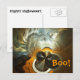 Ein orangefarbenes, braunes, schwarzes und weißes Fraktal, das auf Halloween-Geister und Gespenster hinweist. Text mit "Boo!" erscheint auch in orange.