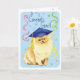 Beglückwünschen Sie Ihren Lieblingsabsolvent mit einem Geschenk, das einen niedlichen, glücklichen Spitzabsolvent kennzeichnet, der einen Mortarboard unter einer Aufregung von Confetti trägt.