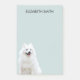 Bild eines niedlichen flauschigen amerikanischen Eskimo Spitz Rasse Typ Hund in der unteren links Ecke, Set auf massiv blass. Personalisieren Sie Ihre Nachricht mit Ihrem Namen oder Ihrer Nachricht in schwarz-minimalistischem Schriftart.