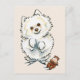 Karikatur eines cremefarbenen/weißen Spitzes, inspiriert von einem Hund namens "Boo Boo", der als spielerisch beschrieben wird und die Liebe der Kamera. Wenn er Aufmerksamkeit will, bettelt er, indem er seine Pfoten windet. Tinte und Bleistift gezeichnet von Andie.