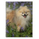 Spitz, der Kamera in den Bluebells betrachtet Notizblock