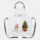 Sieht so niedlich ein kleiner Hund eine rote Bogen Krawatte und Weihnachtsmannmütze. Dieser Spitz Hund ist bereit, sich während der Ferien eine gute Zeit beim Bellen zu wünschen! Wortspiele geben ein Weihnachtsgeschenk voller Freude.