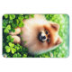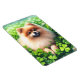 Flexibler Magnet mit einem ansprechenden orangefarbenen Spitz, der ein Kleeband mit ein paar Kleeblättern legt. Ein niedliches St. Patrick's Day Geschenk für Spitz-Besitzer und Pom-Liebhaber.