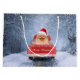 Ein Weihnachtswagen, der durch Schnee fährt und Weihnachtsgeschenke und Spitz-Hund liefert. Eine perfekte Weihnachtsgeschenkidee für jemanden, der diesen Hund züchtet.