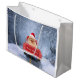 Spitz Hund im Schnee sitzen im Weihnachtswagen Große Geschenktüte