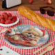 Spitz Hund in Sledge Lass es Schnee Weihnachten Pappteller