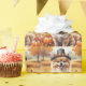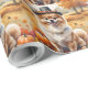 Ein Aquarellbild eines fröhlichen Hundes inmitten eines Haufen lebendiger Herbstlaub, umgeben von winzigen Kürbissen und verstreuten Eichhörnchen. Der Hund trägt einen kleinen Pilgerhut und strahlt vor Freude aus, um den Geist des Erntedanks zu erfassen. Im Hintergrund sorgen weiche Erntefelder und goldfarbene Bäume für eine friedliche Landschaft. Die sanfte Struktur und die warmen, gedämpften Herbsttöne verleihen der Szene ein gemütliches, nostalgisches Gefühl, das perfekt ist, um die Schönheit der Saison zu feiern.