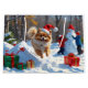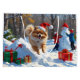 Ein fröhlicher Spitz schlängelt durch die schneebedeckte Winterlandschaft und trägt einen festlichen, roten Weihnachtshut. Mit seinem flauschigen Mantel und seiner lebhaften Persönlichkeit, erweckt dieses Design den fröhlichen Geist der Saison und den Charme dieser geliebten kleinen Rasse. Ein herzlicher Winterurlaub voller Urlaubsmagie.