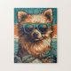 Farbenfrohe grafische Gestaltung eines Spitzes an einem tropischen Strand mit Palmen. Phantastisches Geschenk für Spitz und Spitz Liebhaber.