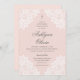 Eine elegante Taufveranstaltung mit weich weißen Spitzen-Ecken auf einem rot-rosa Hintergrund.