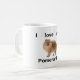 Eine Tasse mit den Wörtern "ich Liebe mein Spitz" mit einem Bild eines Spitzes in der Mitte, sein Teil einer Reihe Tassen, die helfen, Leute drücke ihre Liebe für ihren Hund aus