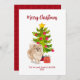 Niedlicher Spitz Weihnachtskarte mit Weihnachtsbaum und Geschenk. Personalisieren Sie Ihren Text.