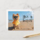 Spitz Welpe mit Sonnenbrille am Strand. Eine lustige Postkarte. Die Nachricht "Das Leben ist ein Strand!" kann entfernt oder durch eine eigene Nachricht ersetzt werden.