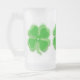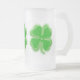 Eine Irishcoffee-Tasse mit drei grünen Kleeblättern und dem Text "Spitze des Morgens zu Ihnen" wiederholt und um den Rand der Kleeblätter für Ihres St Patrick Tagesfeiertag geformt.