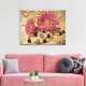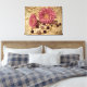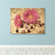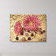 Dieses bezaubernde, ummantelte Leinwand hat ein altmodisches, Vintages Ambiente. Magenta-rosa Mumm und weiße Perlen mit lila Steinen sind Set an Spitze vor einem blassgelben Hintergrund. Die dunklere Vignette an den Ecken verleiht dem Ganzen ein dramatisches Gefühl.