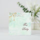 Viktorianische Stileinladung mit sanftem Scrollhintergrund in sanften Aquablau und goldenen Tasseln sind für viele Anlässe schön. Sehr feminin und geistlich.