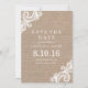 Spitzen- und Burlap-Hochzeit Sichern Sie die Datum Save The Date