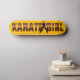 Heller roter Text und ein Karatemädchen in der Pose. T - Shirts, Sweatshirts, Tassen, Plakate, Skateboards und andere Geschenke für die Kriegskunstfrau aller Niveaus. Bunter Gang für den Karatelehrer, -studenten, -schwarzen Gürtel oder -fan.