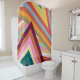 Dieser Duschvorhang hat ein Retro-Design aus den 70er Jahren, das aus einem auf dem Kopf platzierten Vs besteht, die an drei Stellen in Retro-Farben angeordnet sind.