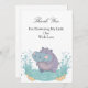 A sweet and playful illustration of a smiling baby hippo splashing gently in the water, surrounded by soft plants and bubbles. With pastel colors and a warm, cheerful expression, this image represents innocence, happiness, and the joyful arrival of a precious little one—perfect for celebrating a baby shower full of love and smiles.