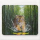Splashing Tiger Cub & Bamboo Stream Mousemat Mousepad