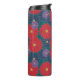 Große Scharlachrot, Mittelmarineblau und kleine königliche lila Blume, die wie ein Dschungelgrün aussehen, verstreut ein buntes Blumenmuster, das auch für den Herbst perfekt ist. Passen Sie das Monogramm auf diesem Schuster mit Ihrem ersten, um einen einzigartigen Behälter für Ihre Getränke zu erstellen.