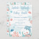 Sweet Splish Splash Baby Bash Ozeantiere Baby Dusche Einladung. Design in Aquarellfarben mit Muscheln, Fischen, Blasen und anderen niedlichen Tieren. Eine perfekte Babydusche lädt ein für einen kleinen Jungen oder ein Mädchen.