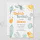 Make a splash with this adorable "Splish Splash" pool party birthday invitation! Featuring charming watercolor illustrations of summer essentials like ice cream, a refreshing drink, sunglasses, a sun hat, a beach towel, flip-flops, a seashell, and a cute rubber duck, all in soft mint green, orange, and gray tones. This fun and fresh design is perfect for celebrating a child’s birthday in the sunshine. Easily customizable with your party details.