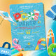 Tauchen Sie ein in die Party Einladung dieses Schwimmbeckens - ideal für Sommergeburtstage und Feiern im Hinterhof! Mit spielerischen Details wie Ballons, Strandbälle und Schwimmbecken ist es der perfekte Ort, um einen Tag voller Sommerspass zu beginnen.