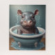 In einer Badewanne sitzen köstliche Haustiere mit Wassertröpfchen und Blasen. Der Welpe blickt mit breiten, unschuldigen Augen auf den Betrachter und seiner kleinen Pfoten-Erholung am Rande der Badewanne. Das Ambiente ist niedlich und humorvoll, ideal für ein Plakat-Set.