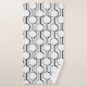 Dieser Duschvorhang hat ein weißes Waschlappen, ein schwarzes Handtuch und ein Badetuch mit einem modernen Design von Kreise in schwarz gespalten in der Hälfte und in Linien auf einem Feld von weiß.