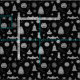 Spookie Things ist eine Sammlung spukhafter Figuren, die mit der Herbstfeier von Halloween in Verbindung gebracht werden. Diese Kollektion, die in einem sich wiederholenden Muster angeordnet ist, umfasst eine Fledermaus, Geist, Katze, Spinnennetz, Hexenhut, Jack-o-Laternen, Kürbis, Spinnennetz, Grabstein, Mond, Schädel, Sterne und Zauberfunken. Diese Version ist in tiefschwarz und hellgrau präsentiert.