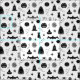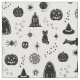 Spookie Things ist eine Sammlung spukhafter Figuren, die mit der Herbstfeier von Halloween in Verbindung gebracht werden. Diese Kollektion, die in einem sich wiederholenden Muster angeordnet ist, umfasst eine Fledermaus, Geist, Katze, Spinnennetz, Hexenhut, Jack-o-Laternen, Kürbis, Spinnennetz, Grabstein, Mond, Schädel, Sterne und Zauberfunken. Diese Version ist in hellweißem und tiefschwarzem Schwarz präsentiert.
