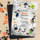 Machen Sie sich mit dieser niedlichen Geburtstagsfeier zu einem herrlichen Moment fertig! Mit spielerischen Skullen in farbenfrohen Kostümen, Bonbons und Spinnennetzen auf geistlich grauem Hintergrund ist es der perfekte Weg, Gäste zu einem lustigen Kostümbash einzuladen. Personalisieren Sie Ihre Kindnamen, Alter und Party Details, um eine schrecklich reizvolle Einladung zu schaffen.