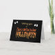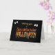 Eine "Spooktacular Halloween" Karte mit orange und gelber Beschriftung auf einem schwarzen Hintergrund und zwei Paaren der gespenstischen Augen, die aus der Dunkelheit heraus blicken. Ein digitaler Entwurf durch Judy Adamson.