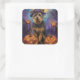 Spooky Airedale Halloween Hexe und Pumpkin Quadratischer Aufkleber
