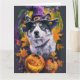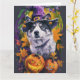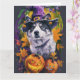 Spooky Akita Halloween Hexe und Pumpkin Karte