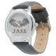 Kinder Edelstahluhr mit schwarzem Lederarmband