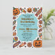 Sie schauen sich die perfekte Einladung an, um einen schönen Geburtstagsbash zu starten! Die Bühne ist mit einem blauen Hintergrund geschmückt, der von einer angenehmen Mischung aus Jack-o'-Laternen, farbenfrohen, eingewickelten Bonbons und skurrilen Sternen gesäumt wird. Dieses Design ist eine süße Leckerei, kein Trick, und es ist komplett anpassbar für jedes Alter und jedes Party Details.