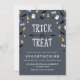 Niedliche, sprichwörtliche Einladungen mit Konfetti aus Gespenstern, Augapfel, Süßmais, Fledermäusen und Hexenschuhen & Besen. Der handgeschriebene Typografie-Trick oder -Treat ist von den Konfetti umgeben; unten steht der personalisierte Party Einladung-Text. Leicht strukturierter Hintergrund - Sie können sogar die Hintergrundfarbe selbst ändern, indem Sie das Tool Anpassen / Anpassen verwenden. Perfekt wie zwischen den Geburtstagseinladungen!