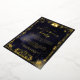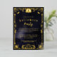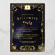 Wunderschönes Halloween-Party-Folie Einladung. Das Design zeigt unsere eigene handgezeichnet, ganzheitliche Halloween-Tarot-Karte in Goldfolie. Das Design ist mit aufwändigen und dekorativen Halloween-Details gestaltet. Der Hintergrund zeichnet sich durch ein gewagtes marineblau-goldenes Design mit glänzenden Imitaten aus. Passen Sie Ihre Monografie, Ihre Veranstaltungsdetails und Ihre Zeit an. Auf der Rückseite befindet sich ein fett marineblau blauer Farbhintergrund mit goldenen Akzenten in Imitaten und Fledermauselementen. Designed by Moodthology Papery.