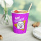 Decorate your spooktacular Halloween party with these party cups featuring a cute ghost character, bright purple background, and retro 90's inspired design elements. Text includes the phrase "Happy Halloween" and "Boo!" to add an extra bit of Halloween flair. Perfect for any kid's Halloween party, birthday party, or fun event.