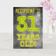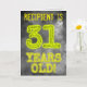 Auf der Vorderseite dieser unheimlichen, individuell gestaltbaren Geburtstagskarte befindet sich die Meldung "31 JAHRE ALT!" mit Zeichen und Ziffern, die ein leckeres, leuchtendes, aura-inspiriertes Aussehen auf einem mysteriös grau trüben, nebelinspirierten Hintergrundmuster aufweisen. Auf der Vorderseite befindet sich auch ein benutzerdefinierbarer Empfängername. Im Inneren befindet sich eine Geburtstags-Grußbotschaft, die individuell angepasst werden kann. Eine individuell anpassbare Geburtstagskarte wie diese könnte jemandem geschenkt werden, der seinen 31. Geburtstag feiert. [~Z0000365]