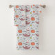 Dieses Design ist ein Halloween-Motiv mit einem skurrilen und spielerischen Design. Die Hintergrundfarbe ist weich pastellblau und mit verschiedenen Halloween-Icons und Symbolen gefüllt.