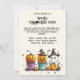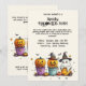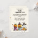 Diese Halloween-Party-Einladung zeigt ein spielerisches und festliches Design mit zwei freundlichen Jack-o'-Laternen und einem niedlichen Geist, die alle fröhlich in farbenfrohen Trick-oder-Leckerei-Eimern sitzen. Der Geist trägt einen whimsikalen Hut und verleiht seinem freundlichen Ausdruck eine lustige Touch, während die beiden Jack-o'-Laternen helle, fröhliche Gesichter aufweisen. Jeder Charakter ist in einen pulsierenden Eimer eingebettet, der von Süßigkeiten überflutet wird und den fröhlichen Geist des Trick-oder-Behandlens einfängt. Die Eimer sind mit lustigen Mustern wie Polka-Punkten und Streifen dekoriert, die jeweils in hellen Farben gehalten sind, die mit den sanfteren Tönen des Hintergrunds kontrastieren. Die Umgebung ist belebt und einladend und lädt zu einem Halloween-Fest ein. Der Hintergrund ist pastellfarben, mit sanften Orange-, Gelb- und lila Farbtönen kombiniert, um eine warme, festliche Atmosphäre zu schaffen, die die hellen Farben der Eimer und Figuren ergänzt. Diese Kulisse trägt zum fröhlichen und einladenden Gefühl der Einladung bei. Oben auf der Vorderseite steht die Überschrift: "Du bist zu einer Spooky HALLOWEEN BASH eingeladen!" Der spielerische Schriftart und die hellen Farben machen den Text vor dem pastellfarbenen Hintergrund auffällig, was zum festlichen Thema beiträgt. Unterhalb der Bildunterschrift gibt es Platz für individuell anpassbare Details, einschließlich Datum, Uhrzeit und Ort des Party, sodass Sie die Einladung auf Ihre spezielle Veranstaltung abstimmen können. Die Rückseite der Einladung setzt sich mit dem gleichen pastellfarbenen Hintergrund fort und behalte das Design zusammenhängend und leicht. Es gibt zusätzlichen Platz für zusätzliche Texte oder Notizen, wo Sie weitere Details oder lustige Nachrichten wie "Kostüme gefördert!" oder "Kommen Sie zu uns für eine Nacht der süßen Leckereien und Spaß!" hinzufügen können. Dieses Design verbindet süße Figuren mit einer farbenfrohen, festlichen Atmosphäre und eignet sich perfekt für ein fröhliches und unvergessliches Halloween-Fest.