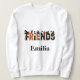 Ein geiles Halloween individuelle Name Sweatshirt für Freunde. Das Design enthält den Text "Friends" in schwarz-orangefarbener Typografie mit orangefarbenen, gelben und schwarzen Halloween-Elementen wie Hexenhut, Kürbis und Schädel. Macht das beste personalisierte Geschenk für den besten Freund. Perfekt, um sie sich ganz besonders zu fühlen, ihr Vertrauen zu stärken und ein einzigartiges und bequemes Geschenk zu bekommen! Wir haben sogar Sweatshirts, Schlüsselanhänger und Shirts mit dem gleichen Design in unserer Kollektion. Bitte Karo es aus. Frohe Halloween!