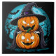 Spooky Halloween Geist mit verzauberten Kürbissen Fliese