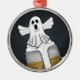 Ein wunderschönes Halloween-Gespenst auf einer gefüllten Tasse mit Schaumstoff oben.